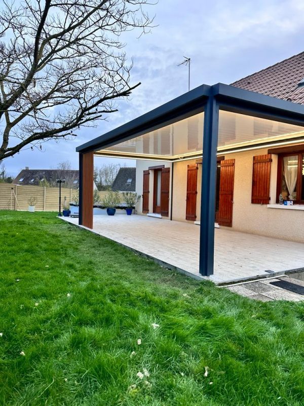 Redécouvrez votre terrasse avec notre best-seller, la pergola bioclimatique adossée à deux poteaux. Cette solution élégante, entièrement conçue en aluminium thermolaqué français, allie design minimaliste et technologie avancée. Sa motorisation intégrée et ses lames orientables vous offrent une maîtrise totale de votre environnement, tandis que son système d’évacuation d’eau intelligent assure une protection optimale. Garantie 10 ans, personnalisable avec éclairage LED et stores, elle transforme instantanément votre espace extérieur en un cocon de bien-être où chaque instant devient précieux.